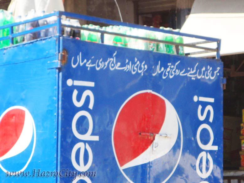 Picture was captured of a light truck in front of Abdul Raof Traders, Bank Road Hazro. Nice lines written on the top of back door. “Jis Mitti Me Khailnay Say Rokti Thi Ma’an, Wahi Mitti Aurhay Aaj So Rahi Hay Ma’an”.